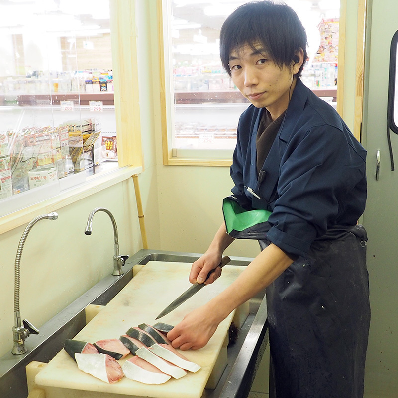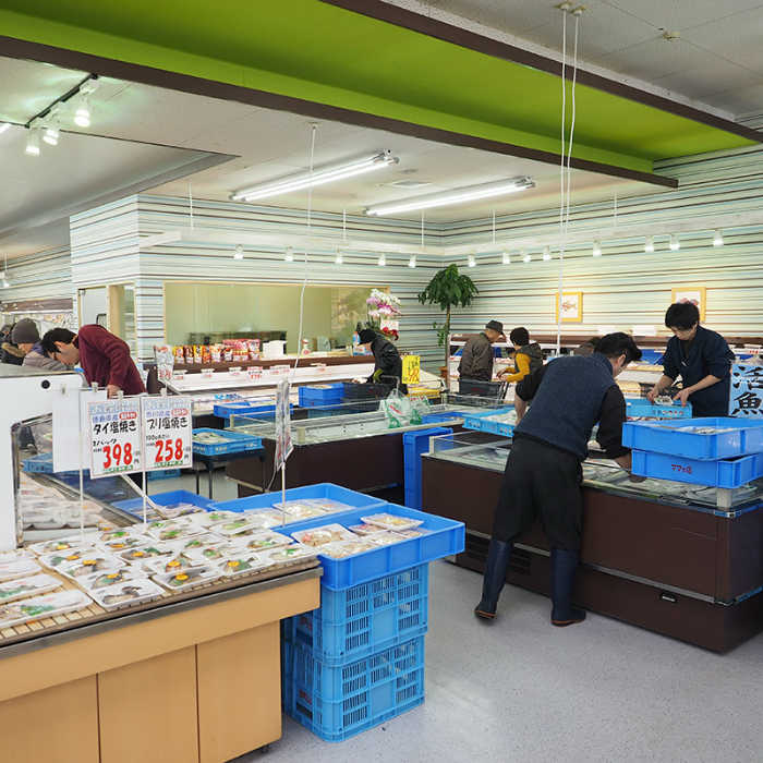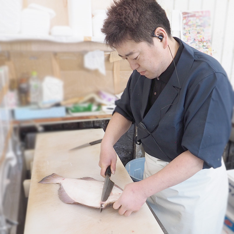 “板野鮮魚"では、お買い求めいただいた魚介をご要望に応じて調理致します。お好みの魚を選んでいただき「三枚におろしてほしい」「お刺身にしてほしい」とか、予算を決めていただいて「おすすめの魚でお造りをつくってほしい」など、ご要望にお応え致します。“板野鮮魚"では、常に安心で安全、新鮮で美味しいふるさとの豊富な魚介を直接市場から仕入れています。その種類は多彩。当店にしかできないサービスをご提供いたします。ぜひ足をお運び下さい。